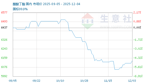 12月3日生意社醋酸丁酯基准价为6112.50元/吨