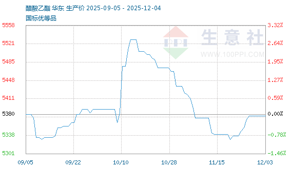 12月3日生意社醋酸乙酯基准价为5376.67元/吨