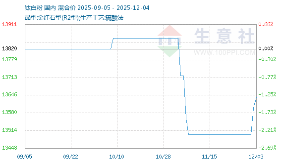 12月2日生意社钛白粉基准价为13500.00元/吨